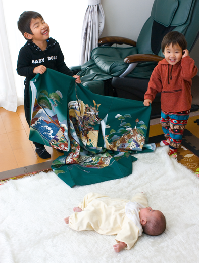 ご自宅で お兄ちゃん達に 「着物持って~~背景にするからとお願いして持っていた