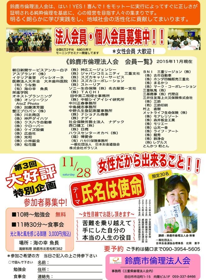 所属する 鈴鹿市倫理法人会からのお知らせです
